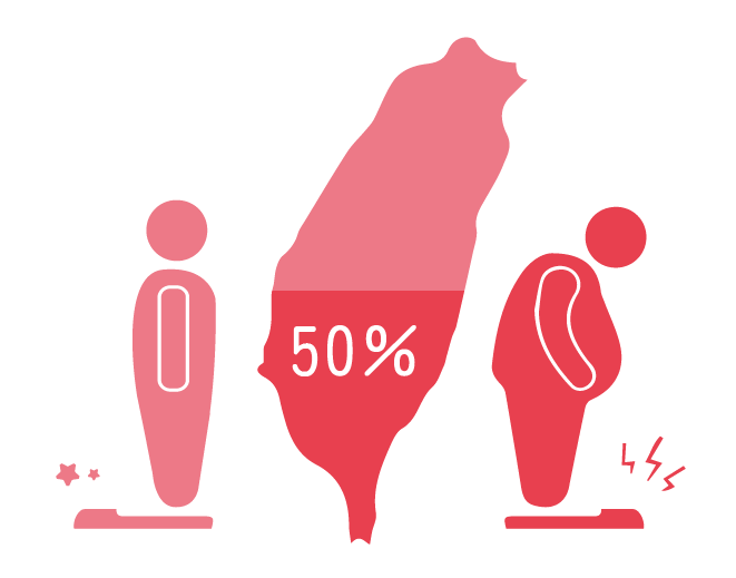 據衛生福利部國民健康署在2018-2022年調查顯示,18歲以上成人過重及肥胖率達50.8%,代表2個成人中就有1個存在過胖問題。
